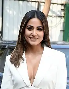 Hina Khan (born 2 October 1987)[1] is an Indian actress who appears in Hindi television and films. She is known for playing Akshara in Star Plus's Yeh Rishta Kya Kehlata Hai[2] and Komolika in Kasautii Zindagii Kay 2.[3] In 2017, she participated in the reality shows Fear Factor: Khatron Ke Khiladi 8[4] and Bigg Boss 11[5] and emerged as the runner up in both.
