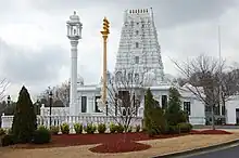 The Hindu temple has two complexes – the older and larger shrine for Lord Venkateswara as the presiding deity, and the newer one consecrated in 2007,[5] with Lord Shiva as the presiding deity Because the Shiva temple here, is adjunct, to the Venkateshwara temple, Lord Shiva is known as Ramalingeshwara. In addition to the presiding deity, both complexes have shrines for other deities such as Padmavathi, Hanuman, Ganesha, Kala Bhairava, Navagragha etc.[6][7]