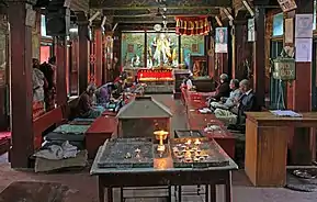 One of the rooms on the first floor is a prayer hall with an image of an eight-armed Amoghapasa.[17]