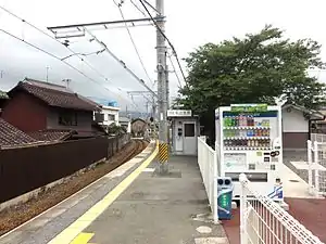 Hirokōji Station is served by the Iga Line, and is located 4.4 rail kilometers from the starting point of the line at Iga-Ueno Station.[1]