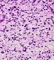 A histopathologic diagnosis of prostate cancer is the discernment of whether there is a cancer in the prostate, as well as specifying any subdiagnosis of prostate cancer if possible. The histopathologic subdiagnosis of prostate cancer has implications for the possibility and methodology of any subsequent Gleason scoring.[1] The most common histopathological subdiagnosis of prostate cancer is acinar adenocarcinoma, constituting 93% of prostate cancers.[2] The most common form of acinar adenocarcinoma, in turn, is "adenocarcinoma, not otherwise specified", also termed conventional, or usual acinar adenocarcinoma.[3]