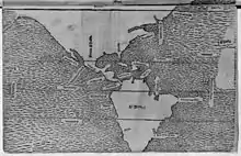 Map of "the Indies" (America) in a 1553 edition of the Historia general de las Indias.