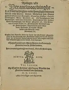 - ↑ Stichting Gihonbron Middelburg, Apologie van Willem van Oranje, hertaling en evaluatie na vierhonderd jaar 1580-1980, Lannoo Tielt/Amsterdam 1980