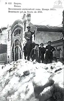 In spite of the tight Ottoman control, the Russian interest toward Batoum did not fade. In 1876, a thorough reconnaissance of the area was made by a Georgian scholar and colonel in the Russian service, Prince Giorgi Kazbegi, who left the only general account of the region available at that time.[4] During the Russo-Turkish War of 1877-1878, the Ottomans had Batoum heavily fortified and successfully resisted the Russian amphibious attempts at capturing the town. However, an eventual defeat in the war forced the Sublime Porte to cede Batoum and Adjara, among other territories, to the Russian Empire in the Treaty of San Stefano of 3 March 1878. This clause was confirmed, following dramatic negotiations, by the final act of the Congress of Berlin in July 1878. In exchange for acquiescing in a Russian acquisition of Batoum, the British Foreign Secretary Marquess of Salisbury persuaded the Russian diplomats to declare Batoum a free port, fortifications, naval arsenal, or naval station being forbidden.[6]