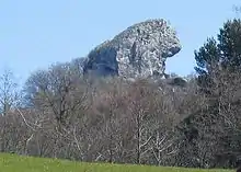 Cominium, at the fall of the Western Roman Empire, became a colony of neighboring Telesia and was part of its gastaldate.[6] The Lombards around the year 700 transformed the cave of the Morgia Sant'Angelo into a chapel dedicated to St. Michael the Archangel. According to some historians, the cave of the lioness "must have originally constituted a pole of ritual aggregation, centered on the Michaelic cult after the antidolatrous work carried out by the bishops of Benevento Barbato, and of Capua Decoro."[7]