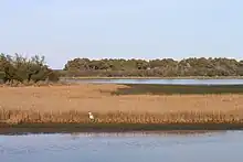 Chincoteague is the name of a town, and the barrier island on which it is located, on Virginia's Eastern Shore, in the United States.[1] The island is about 8 miles (13 km) long and 2 miles (3.2 km) wide. Sand forms its soil, with a thin layer of loam above it away from the water, enough to support pine trees and grass.[2] Chincoteague Inlet, a break in the barrier island system, occurs near Chincoteague Island, at the southern end of Assateague Island. Assateague shelters Chincoteague from the Atlantic and stretches north almost 30 mi (48 km) to Ocean City, Maryland.[1]