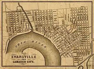 Street map of Evansville and Lamasco in 1852