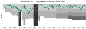 Hibs performed well in their first season back in the top flight, finishing fourth in the 2017–18 Scottish Premiership.[96] Hibs then finished fifth in the 201819 season, with Paul Heckingbottom being appointed in February. Heckingbottom was sacked in November 2019 and replaced by Jack Ross.[97] Hibs finished seventh in a 201920 league season that was curtailed by the COVID-19 pandemic. In the following season they finished third in the league and reached the 2021 Scottish Cup Final, but this was lost 10 to St Johnstone.[98]