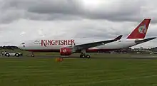 Kingfisher Airlines was established in 2003 and ceased operations when its license was cancelled on 20 October 2012. It is owned by the Bengaluru based United Breweries Group. The airline started commercial operations on 9 May 2005 with a fleet of four new Airbus A320-200s operating a flight from Mumbai to Delhi.[1] It started its international operations on 3 September 2008 by connecting Bengaluru with London. Kingfisher's head office is located in Kingfisher House Western Express Highway Vile Parle (E) Mumbai – 400099 India and its registered office is located in UB City, Bangalore.[2][3] Its head office was previously in the Kingfisher House in Vile Parle (East), Mumbai.[4] In 2012 Vijay Mallya was trying to sell the Vile Parle Kingfisher House.[5] The airline had shut down its operations when on 20 October 2012 the DGCA suspended its flying license. This suspension had been due to failure to give an effective response to the show-cause notice issued by DGCA. However, The airline had locked out its employees for several days before this suspension. On 25 October 2012, the employees agreed to return to work.[6] On 7 June 2010 Kingfisher became a member elect of the Oneworld airline alliance when it signed a formal membership agreement. Kingfisher confirmed on 20 December 2011 that it will join the Oneworld airline alliance on 10 February 2012. Kingfisher would have been the first Indian carrier to join one of the big airline alliances.[7] However, on 3 February 2012, owing to bad financial situation and two days after the International Air Transport Association (IATA) clearing house suspended Kingfisher Airlines; the airlines participation to Oneworld has been put on hold.[8]