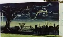 Central and parallel to the SDSU student protest movement was an 8 foot high wooden construction fence that encircled a new campus building. Students quickly put up protest messages, paintings, and cartoons urging students to rally, vote, and challenge the school president. Citing a need to "clean up" the campus during graduation of 1991, President Day attempted to paint over the now symbolic construction fence wall. The night before the attempted wall paint over by President Day, a large police force arrested eight students peacefully sitting in front of the wall. The next morning, word quickly gathered on campus about the arrests and dozens of student rushed to sit in front of the wall ultimately stopping the painters.[79]
