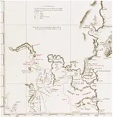The country on the eastern side of the bay, is stony; and, wherever we landed, is wretchedly barren. The islands have a better appearance. Smooth Island, contains about one hundred acres of ground, that might answer for a garden: its soil is shallow and sandy.[8][9]