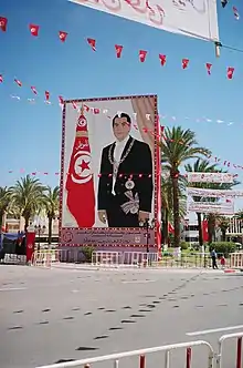 - ↑ John P. Entelis, "Tunisia" pp. 532–533 in The Americana Annual 1988 (New York: Grolier). Ben Ali's background was said to be pro-Western, trained in military affairs by France and the U.S.A.; he had previously clamped down on both left and right opponents, especially Islamic fundamentalists. Ninety fundamentalist had been found guilty of bombing hotels earlier in 1987. Entelis (1987) pp. 532–533.