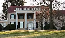 In 1800 Harman Blennerhassett built a large Palladian home on Belpre Island, now called Blennerhassett Island, on the Ohio River near Parkersburg.[5] Similar structures and accompanying slaves soon spread along the Ohio River up to the northern panhandle.[6] In 1814 Zadok Cramer wrote of his travels on the Ohio River in the Western Gleaner:[7]