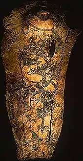 Tattooing has been practiced across the globe since at least Neolithic times, as evidenced by mummified preserved skin, ancient art and the archaeological record.[1][2] Both ancient art and archaeological finds of possible tattoo tools suggest tattooing was practiced by the Upper Paleolithic period in Europe. However, direct evidence for tattooing on mummified human skin extends only to the 4th millennium BC. The oldest discovery of tattooed human skin to date is found on the body of Ötzi the Iceman, dating to between 3370 and 3100 BC.[3] Other tattooed mummies have been recovered from at least 49 archaeological sites, including locations in Greenland, Alaska, Siberia, Mongolia, western China, Egypt, Sudan, the Philippines and the Andes.[4] These include Amunet, Priestess of the Goddess Hathor from ancient Egypt (c.2134–1991 BC), multiple mummies from Siberia including the Pazyryk culture of Russia and from several cultures throughout Pre-Columbian South America.[3]