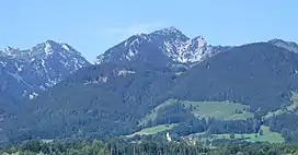 ![]() Wendelstein (left), Hochsalwand (middle) with Lechnerkopf, as seen from Flintsbach | |