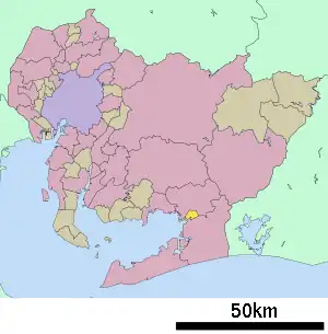 Map showing original extent of Hoi District in Aichi Prefecture: