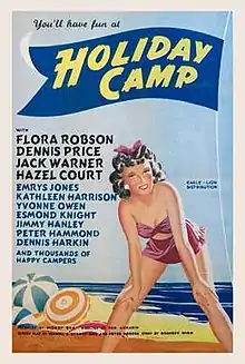 Holiday Camp is a 1947 British comedy drama film directed by Ken Annakin, starring Flora Robson, Jack Warner, Dennis Price, and Hazel Court, and also features Kathleen Harrison and Jimmy Hanley.[3] It is set at one of the then-popular holiday camps. It resonated with post-war audiences and was very successful. It was the first film to feature the Huggett family, who went on to star in "The Huggetts" film series.