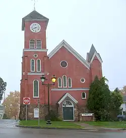 Holley Village Historic District is a national historic district located at Holley, Orleans County, New York. The district encompasses 40 contributing buildings, 1 contributing site, and 1 contributing object in the central business district of the village of Holley. The district developed between about 1822 and 1952, and includes buildings in a variety of architectural styles including Greek Revival, Italianate, Queen Anne, Beaux Arts, and Late Gothic Revival. Notable contributing resources include the Public Square and Salisbury Fountain (1914), First Presbyterian Church (1907-1908, 1958–1959), White-Alis Building (c. 1875), Village Building (c. 1880), Rutland Block/Lockwood Building/Community Library (1896), Odd Fellows Hall (1890), Downs Residence (c. 1860s), St. Mary's Roman Catholic Church (1904-1905), Downs Hotel/Hotel Holley designed by Andrew Jackson Warner (1893, 1920s), Village Building and Holley Standard (1899, 1903), First Methodist Episcopal Church (1868-1869), and the Holley High School (1930-1931).[2]