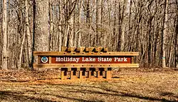 Holliday Lake State Park is a state park located within the confines of Appomattox-Buckingham State Forest in Virginia. The land was cleared as farmland in the 1880s before being returned to its forested state in the mid-20th century. Today, the park is known for its fishing opportunities.