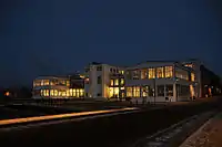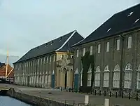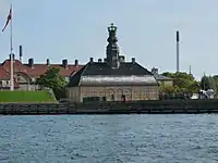 Nyholm Central Guard (Danish: Nyholm Hovedvagt) is a guardhouse from 1744 designed by Phillipe de Lange. It has a characteristic tower featuring a clock and with a crown atop. For many years it was simply referred to as "Under Uret" (English: "Beneath the Clock"). The crown at the top was reused in the design of the spire for Christiansborg Palace. However, in connection with a renovation in 1934, two more crowns were added to the original spire at Christiansborg, making the resemblance somewhat less obvious.[4]