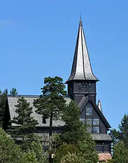 Holmenkollen Chapel (Holmenkollen kapell) is located in the neighborhood of Holmenkollen in the Vestre Aker borough of Oslo, Norway. The original chapel from 1903 was destroyed by arson in 1992. The new chapel was completed in 1996. Holmenkollen Chapel is a listed site, registered in Norway's cultural heritage database.[1]