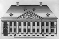 The original house was built for Hofmarschall Henrik Ulrik Lützow in 1687.[1] The two-storey, nine-bay house was possibly designed by General Building Master Lambert van Haven.[2] Lützow's property was listed in Copenhagen's first cadastre of 1689 as No. 261 in the city's West Quarter (Vester Kvarter).