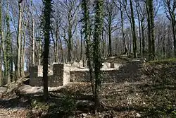 Today only wall remains may be seen along with the plan of a round tower. The deep moats may also be made out. Within the double ditch system, the site has an area of about 5,000 square metres. In 1997 and 2006 there were archaeological excavations and safety measures in order to preserve the castle and make it attractive for visitors.
