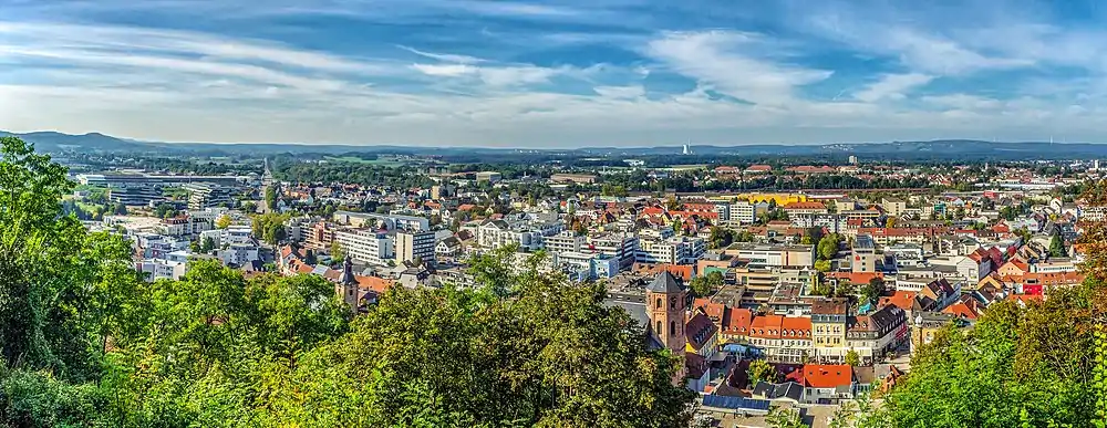 Homburg (German pronunciation: [ˈhɔmbʊʁk] ; French: Hombourg, [ɔ̃buʁ]; Palatine German: Humborch) is a town in Saarland, Germany and the administrative seat of the Saarpfalz district. With a population of 43,029 inhabitants (2022),[3] it is the third largest town in the state. The city offers over 30,000 workplaces. The medical department of the University of Saarland is situated here. The city is also home to the Karlsberg beer brewery. Major employers include Robert Bosch GmbH, Schaeffler Group and Michelin.