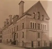 Isabella Honan (born Isabella Cunningham in 1861) was the sister-in-law of Robert Honan, the last male heir of a wealthy Catholic family of butter merchants.[13][14] Robert and his brother Matthew had both died by 1909,[15] and Robert had left his estate to Isabella. When she died in 1913,[16] she left £40,000 (equivalent to £4 million in 2019) to the city of Cork, including £10,000 which her executor, a Dublin solicitor John O'Connell, was instructed to use to establish a centre of worship for Catholic students in UCC, along with other charitable and educational purposes.[17] These monies became known as the Honan Fund.[18][19] O'Connell used part of the funds to provide scholarships for Catholic students at UCC and acquired the site of St. Anthony's Hall (also known as Berkeley Hall) from the Franciscan order to develop an accommodation block for male Catholic students known as the Honan Hostel.[upper-alpha 1][20][21]