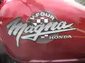 The 1987 Super Magna had a silver, grey and black Honda "wing" tank decal, while the 1988 model had a silver "MAGNA" tank decal.