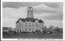 The Hood County Courthouse Historic District in Granbury, Hood County, Texas encompasses 12 acres of land. The principal building in and the focal point of the district is the historic Hood County Courthouse built in 1890–1891. Other major buildings include the 1885 Hood County Jailhouse, the 1885 First National Bank Building, the 1891 building which formerly housed the Hood County News, the 1893 Aston-Landers Saloon Building,[2] the 1893 Nutt Brothers Building, and the 1886 Granbury Opea House. On June 5, 1974, the district was added to the National Register of Historic Places. The nomination form called it "one of the most complete nineteenth century courthouse squares in Texas."[3][4] The district is also recognized as a State Antiquities Landmark and includes several Recorded Texas Historic Landmarks.