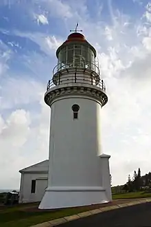 The Hood Point Lighthouse (Afrikaans: Hood Point-vuurtoring) is a lighthouse in East London, South Africa. It began operating on 4 June 1895. It is 19 m high and centres on a white, round stone tower. The lantern dome is painted red. Before the building of the lighthouse, the Castle Point Lighthouse served the area.[1][2] It lies beside the Potters Pass Nature Reserve and the West Bank Golf Course.