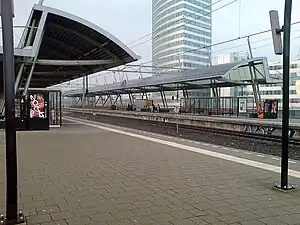 Hoofddorp has a depot/sidings further west from the station, this is the reason many sprinter services have their terminus over here. Intercity services terminating at Schiphol also use this depot before returning. The station consist of 2 double-track platforms and has 6 tracks. Regular bus services stop at street level below the station. ZuidTangent bus rapid transit lines 300 and 310 use the platform level stop next to the station.