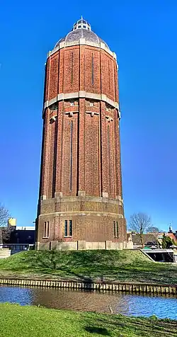 The Hoogkarspel water tower is a water tower in Hoogkarspel, Netherlands built in 1930. Its architect is W. Mensert, who worked for PWN at the time. The tower is 49,1 metres tall and has two water reservoirs of 600 and 400 m3,[1] and is an official rijksmonument. It has no current use.