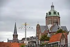 Hoorn's fortunes declined somewhat in the eighteenth century. The prosperous trading port became little more than a sleepy fishing village on the Zuiderzee.[5] Following Napoleonic occupation, there was a period during which the town gradually turned its back on the sea.[5] It developed to become a regional center of trade, mainly serving the smaller villages of West Friesland.[5] Stallholders and shopkeepers devoted themselves to the sale of dairy products and seeds.[5] After the introduction of railways and metalled roads in the late nineteenth century, Hoorn rapidly took its place as a conveniently located and easily accessible hub in the network of towns and villages of North Holland. In 1932, the Afsluitdijk was completed, and Hoorn was no longer a seaport.