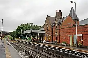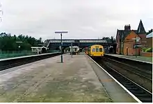 Through services to Liverpool began on 30 September 1985 when the line between Rock Ferry and Hooton was electrified becoming a part of Merseyrail's Wirral Line.[1] Previously passengers for Liverpool changed at Rock Ferry. Hooton then became a temporary interchange station for passengers from Chester and Ellesmere Port to Liverpool. Further electrification work saw the Merseyrail Wirral Line extend to Chester in 1993 and Ellesmere Port in 1994.[3][4][9] The station transformed into a through station.