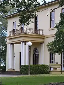 The present Horningsea House was built in the 1830s, by 1839[2]using convict labour. An unreferenced map (1882) described by Keating shows the house, grand driveway, and an assemblage of outbuildings around the house.[3] The Moore family sold Horningsea in 1855 to clear debts from the 1840s depression[4][1] to members of the Solomon family, who gave the house its current name.