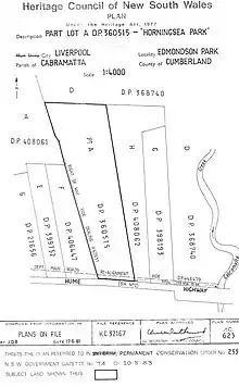 - 1 2 3 4 5 6 7 8 9 10 11 12 13 14 15 16 17 "Horningsea Park". New South Wales State Heritage Register. Department of Planning & Environment. H00255. Retrieved 1 June 2018.