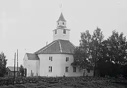 The earliest existing historical records of the church date back to the year 1328, but the old stave church may have been built between the years 1150 and 1200. That church was located slightly to the west of the present church site (where the road is located today). There is an old clay baptismal font in the church dating back to Catholic times, but it has not been used in over 400 years. In the early 1800s, the old church was painted red. Over time, the old stave church had fallen into disrepair and was in poor condition.[3][4]
