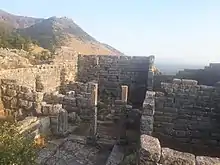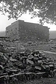 In Orraon “most of the houses are still standing two stories high and the street plan is still visible".[5] In the town plan twelve narrow parallel streets, in the north and south direction, cross two wider streets.[6] By the way the streets run from an oblong town block, the insula, and fifteen meters wide.[7] The settlement consisted of 100 houses, built of local limestone.[8] One house occupies the full width of each insula. Some pieces of the houses still remain today. The main parts that are visible today are the stone the houses were made of, window frames, door frames, and a few more features of the house are still visible. Everybody in the town of Orraon used a cistern. The cistern was located near the main gate, which was located in the northeast part of town. The cistern was located in this area because it was the highest point of altitude in the city.[9] They had a closure wall located around the cistern. They put the antae frame placed at the south wall of the tank, and the straight stairs at the northeastern corner of the tank. The stairs helped them to get to the bottom of the tank to clean it as well as get water out of the tank. The wall was built out of rectangular stones, and limestone. The wall was higher than the cistern to keep people from throwing trash into the tank.