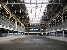 The building was designed by City Architect James John Woolnough.[3] It cost CA$900,000, ($15.5 million in 2021 dollars)[4] one-third of the cost covered by the Government of Canada.[5] The main contractor was Christman-Burke Ltd. It took 20 weeks to construct.[6] The building opened on August 15, 1931, in time for the 1931 CNE and the 1931 Winter Fair.[6] When first constructed, it had a horse hospital with a separate entrance and a second-floor lounge for lady exhibitors.[6] The interior floors are concrete, although the stalls have planking floors.[6] The original glass specified by architect Woolnough for the building was sourced from outside Canada, to the disappointment of the 1931 City Council.[7] The building was previously the site of various smaller stables and buildings used by the Winter Fair.
