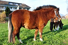 There's a persistent belief that all ponies are genetically predisposed to putting on weight compared to horses. The reality is more nuanced. There are indeed genetic causes, with certain breeds of hardy ponies (such as the British Mountain and Moorland) being predisposed to put on weight if they have free access to rich food.[48] Lack of exercise is another determining cause. Ponies are more often kept as pets than horses, which also leads to less frequent exercise, a factor in obesity.[49] Certain breeds, such as Highland and Welsh Cob ponies, are almost systematically shown in obese condition at competitions.[50] In the United States, Halter competitions are attended by overweight horses, who are rewarded.[28] An investigation by the periodical Cheval Savoir calls into question breeders and show judges of heavy French breeds, particularly the Breton horse syndicate, which awards model and gait premiums to fat, even lame animals, and judges horses in use as too thin, thus depriving their breeders of premiums awarded to obese horses.[44][51] Generally speaking, people who come into contact with horses on a daily basis seem to get so used to seeing overweight animals that they come to regard this body condition as the norm.[47]