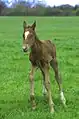 Foal growth leads to particularly rapid weight gain in the first few months. At birth, foals weigh 8 to 12 % of their mother's live weight. They double their birth weight during their first month of life. By the time they reach weaning age, at around 6 or 7 months, their weight has quintupled. By the age of one, they have reached around 65 % of their adult weight and 90 % of their adult height, which explains the often gangly appearance of foals at this age.[10] Draft foals fattened for slaughter weigh on average 59.3 % of the adult horse's live weight at 8 months, then 70.1 % at 12 months, and 90.1 % at 30 months.[2]