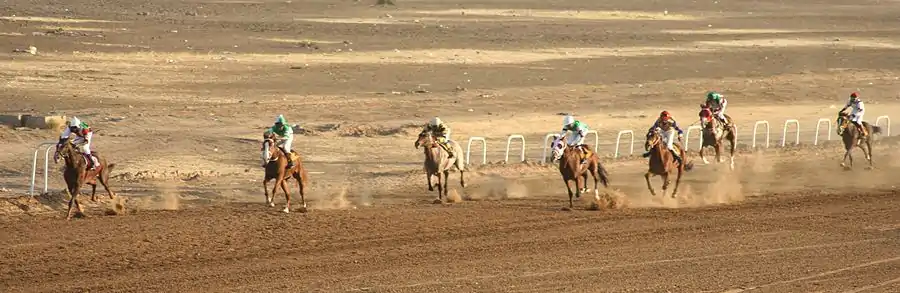 Betting is prohibited in horse racing, in accordance with Islamic laws.[2] The racing season takes place from October to June, due to the heat.[2] People suspected of betting despite the ban are regularly arrested.[2] Sudanese jockeys, renowned for their courage and combativeness, are recruited by racing stables in Gulf countries.[2] In 2012, the African Union proposed the organisation of horse races in Nyala, in South Darfur, as a factor of cohesion and peace between peoples.[5] Maintaining the races also supports cohesion and morale among the Sudanese population of Khartoum since the secession of South Sudan.[26]