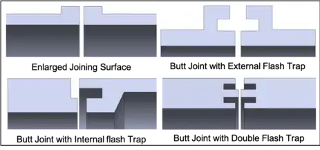 • Butt Joint Flash Trap (External) - This type of joint hides flash on the outside surface and is generally used to reduce noise in surrounding areas.