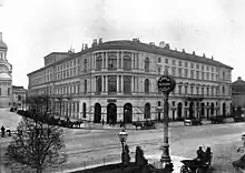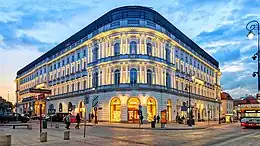 After the fall of communism, in 1993, the heirs of the hotel's original owners sued to regain the hotel from the state-run Orbis Hotels chain. The case took 12 years, as Orbis claimed they had constructed the current building and invested a great deal of money in it.[5] The heirs were ultimately successful in their lawsuit, and the hotel was closed down by Orbis on June 30, 2005. The hand-over was completed later that year on September 1. While preparations were made for a complete restoration, spaces on the ground floor were rented out to shops and cafes, and the former hotel rooms and apartments in the building were rented out as offices. The structure was completely closed in 2013 in anticipation of the impending reconstruction.[4]