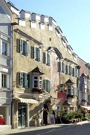Hotel Lilie is a traditional inn located in historical center of Sterzing, South Tyrol, Italy, the first written record about it is from 1461.[1] The hotel worked as an inn since its origin and today it is one of the most beautiful buildings of the Late Middle Ages and is protected by the state as a treasure of fine arts.[2]