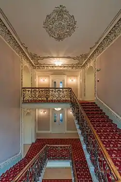 The Hotel National was financed by The Varvarinskoe Joint-Stock Company of Householders[1] and designed by architect Alexander Ivanov. Construction began in 1901 and the 160-room hotel opened on January 14, 1903. The hotel's opening is sometimes listed as January 1, because Russia was still using the Julian calendar at the time, which was 13 days behind the Gregorian calendar used in the rest of the world.[2] In 1915 the hotel made plans to add two floors on top of the six-story structure, but shortages caused by World War I meant that the work was never begun.[3]