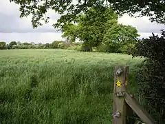 The area slopes gently upwards towards the south and east, from an elevation of around 50 metres at the western boundary near Wybunbury, to a high point of 76 metres at SJ714494, on the South Cheshire Way near Ellesmere Farm. Outside Hough village, the parish is predominantly rural, with the major land use being agricultural. Swill Brook runs along parts of the eastern boundary of the parish, and an unnamed tributary forms part of the southern boundary. Numerous small meres and ponds are scattered across the area. Several small areas of woodland fall within the parish, including Cobb's Moss and Hough Gates.[11][12] To the east of Cobb's Lane, south of Hough village, lies Hough Common, an area of common land designated as a county site of biological importance (grade B).[12][13]
