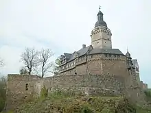 From the mid 13th century on, two branches of the Asseburg family emerged: an elder Eastphalian-Thuringian branch and a younger Westphalian branch. The former had its initial seat at Moringen Castle, later also at Ampfurth near Oschersleben. In 1437, Falkenstein Castle in the Lower Harz was acquired as an enfeoffment of the bishops of Halberstadt. In 1509, Wallhausen was also acquired, initially as an enfeoffment of the County of Mansfeld, later of the Electorate of Saxony. Meisdorf House near Falkenstein later became the permanent residence of the branch, while Falkenstein Castle was used for hunting parties.